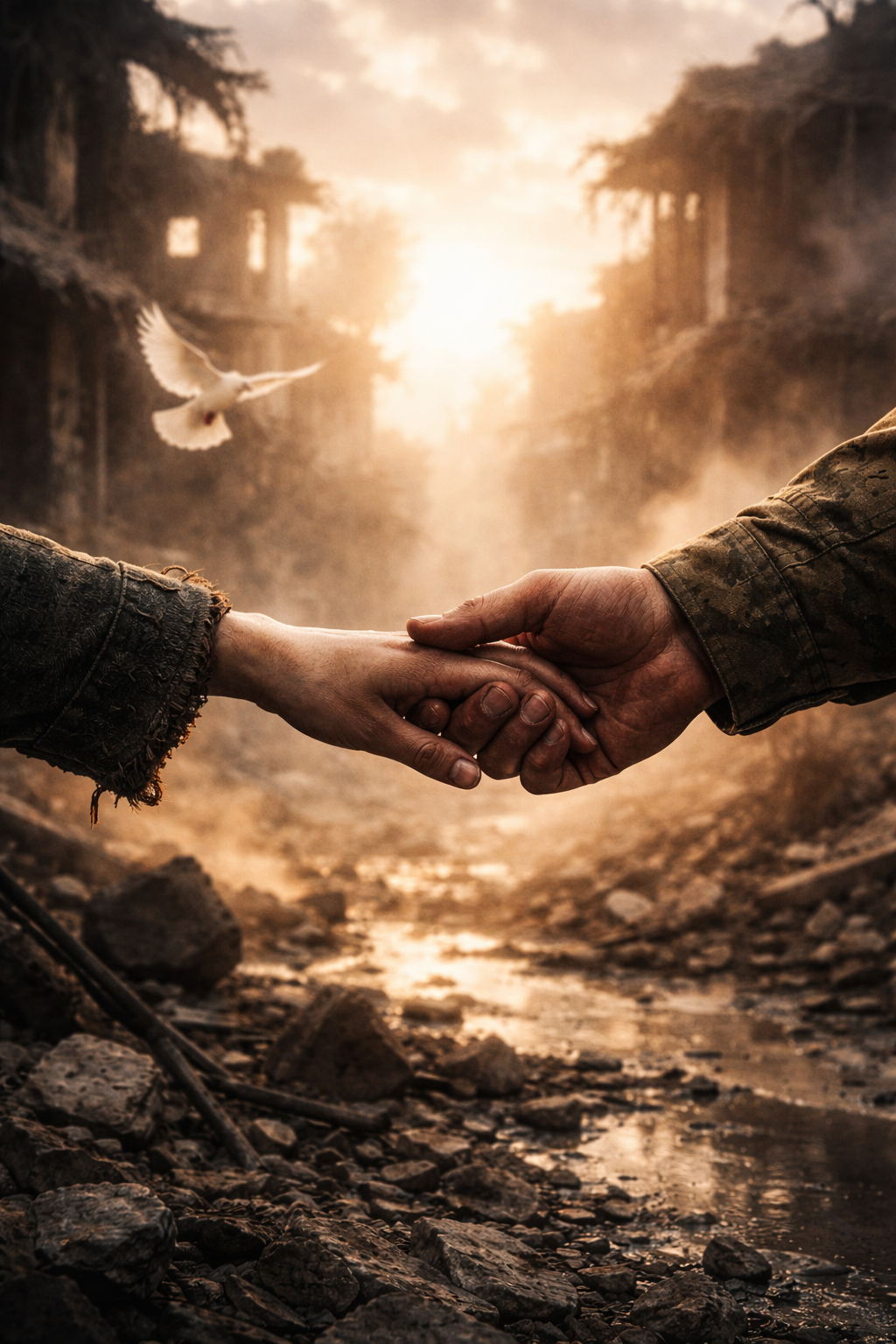 Il gesto sospeso Non basta il vento. Il fumo resta tra le pietre, nelle crepe dei muri, negli occhi. I giorni cadono uno sull’altro, come nomi che nessuno chiama più. La guerra — un vuoto che prende forma: case squarciate, la vita rimasta scoperta, voci spezzate a metà, mani gelide di morte. Qualcosa insiste, sotto — non cede: un tremore lieve, una mano che si arresta, un fucile che si inceppa. Nessun annuncio. Solo questo sottrarsi al colpire, questo restare sul limite. E lì, dove tutto si rompe, qualcosa resta — la pace, nel gesto sospeso. (Rosanna Galvani) ENGLISH The Suspended Gesture The wind is not enough.Smoke remainsamong the…