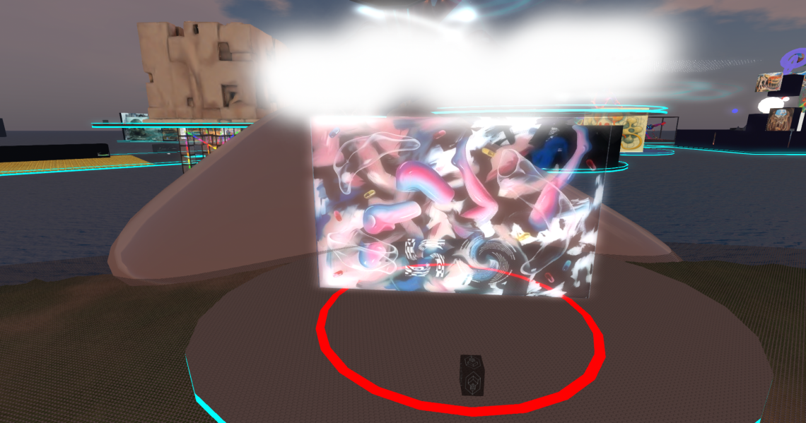 E’ un oggetto mesh generato tramite Meshy e successivamente importato in Craft World, dove assume la forma di un artefatto ambiguo, sospeso tra scultura digitale e reliquia post-organica. La superficie dell’opera è definita da una texture ottenuta attraverso un prompt derivato da un test curatoriale, un dispositivo linguistico che, nel suo tentativo di produrre senso, finisce per generare un eccesso visivo.